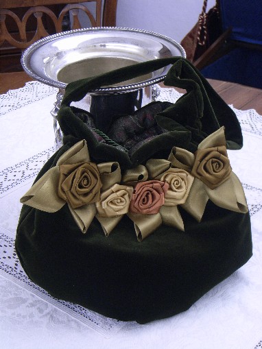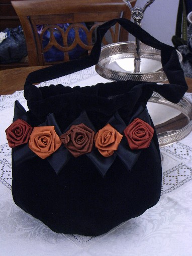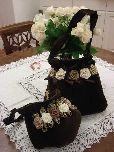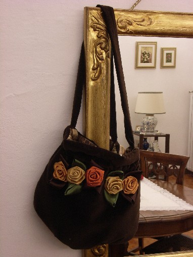 Borsetta con fiori di rasoe finiture in passamaneria dorata