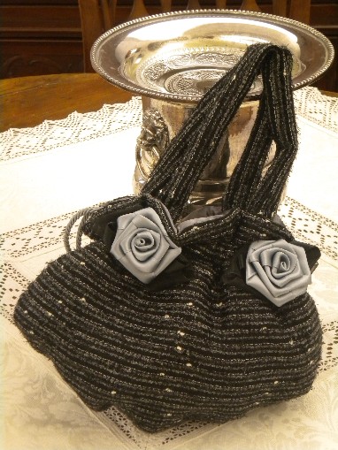 Borsetta in taffetà con fiori di organza,