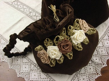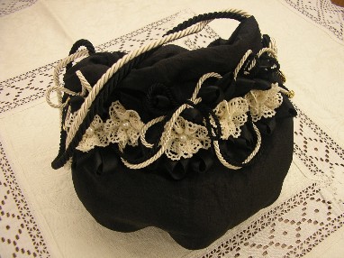 con fiori di trina e fiocchi di cordone