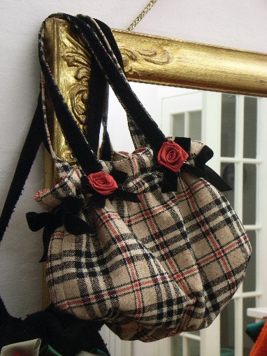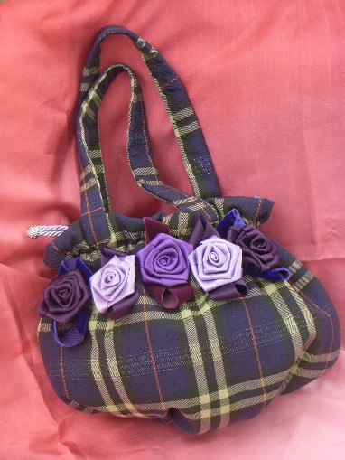 con fiori di raso e fiocchi di velluto